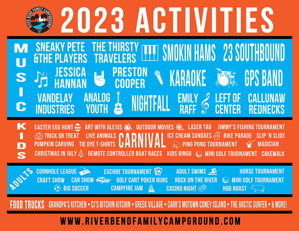 For generations, River Bend Family Campground has been curating a camping experience that nurtures our camper’s desire for community, relaxation, and family-oriented activities.